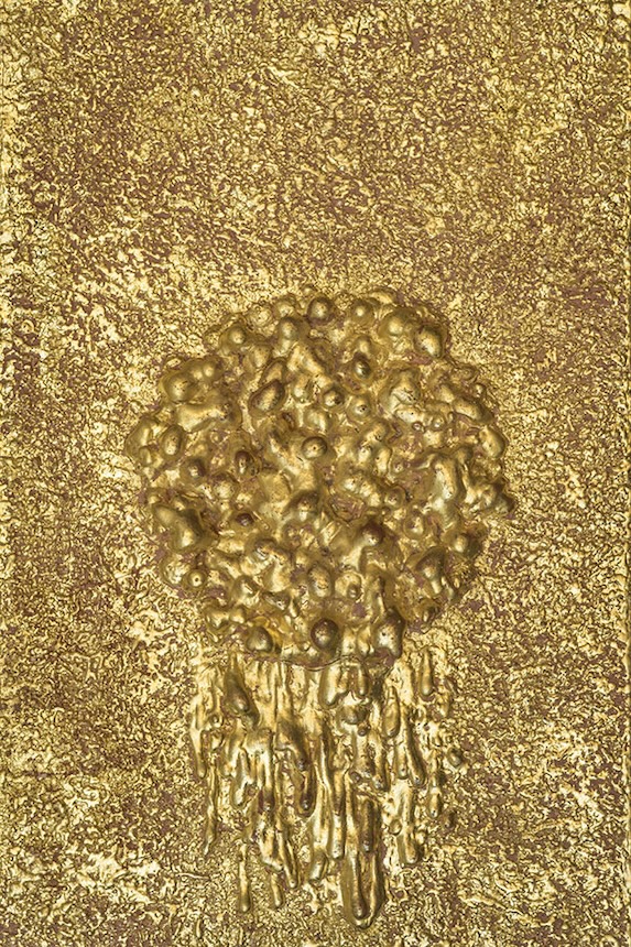 A perfect metal, gold never rusts or sullies. It's the only metal that becomes cotton without ceasing to be iron. The pedestal of knowledge, the throne of wisdom, gold is also the symbol of knowledge, immortality and enlightenment. Marie-Laure chooses the "gilding in tempera" technique, polishing the gold with agate stone to give it a unique lustre.