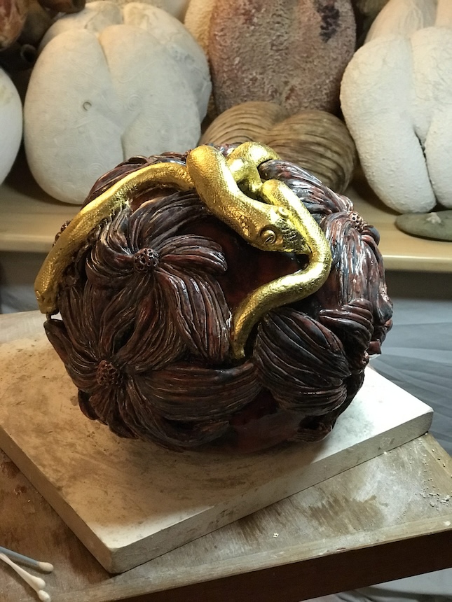 Marie-Laure Viébel is fascinated when she discovers the world's largest seed: rare and mysterious, the coco de mer, endemic to the Seychelles archipelago, is a natural wonder. It is indeed the seed of the large coconut of the coco de mer, which contains up to 3 of them, each weighing 20 kilos. These shapes are primitive and singular. They imitate femininity, a symbol of sensuality for some, fertility for others. Marie-Laure shapes and transforms them, sculpting them in other materials and dimensions to inscribe these rare symbols of nature's power in the long term.